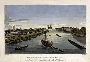 The wine was delivered in large barrels from vineyards in Beaujolais, Cahors, Burgundy, and the Touraine; they could be told apart because each region had a different size and shape of barrel. The wines were frequently mixed to make an ordinary table wine. These were the wines commonly served in homes, the taverns and less-expensive eating places of Paris. In 1818 the Halle took in and taxed 752,795 hectoliters of wine, or about one hundred liters per year for every resident of Paris.[22]