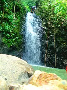 The Pasonanca Natural Park covers an area of 12,107 hectares (29,920 acres) and a buffer zone of 5,307 hectares (13,110 acres) in the southern end of the Zamboanga Cordillera mountain range that runs north to south serving as the backbone for the peninsula of Zamboanga. It is contained within the local government areas of Pasonanca, Lunzuran, Lumayang Cacao, Lapacan, Lamisan, Bungiao, La Paz, Balurno and Dulian in Zamboanga City and parts of the municipality of Sibuco in Zamboanga del Norte.[1][4] Mount Pulong Bato is a prominent peak located within the park rising to 360 metres (1,180 ft). It is crossed by Tumaga River and its tributaries which serve the bulk of the water supply for the Zamboanga City Water District through a diversion dam.[3] The park also contains several rock formations, springs and waterfalls including the Dulian Falls.