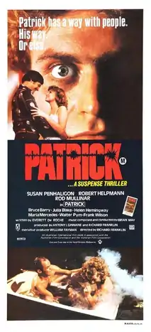 Patrick is a 1978 Australian science fiction horror film directed by Richard Franklin and written by Everett De Roche. The film popularised Ozploitation films in other territories.[3] A remake was released in 2013.