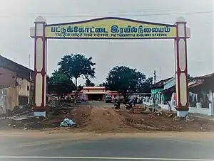 Pattukkottai railway station is a railway station serving the town of Pattukkottai in Tamil Nadu, India. This station was first opened on 20.10.1902[1] along with muthupettai to pattukottai section before independence. This station located in the thiruvarur -karaikudi section one of the longest stretch in Tiruchirappalli railway division .
