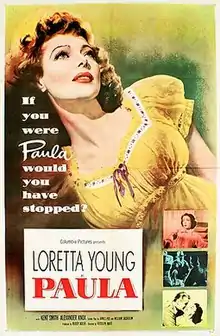 Paula (reissued as The Silent Voice) is a 1952 American film noir drama film directed by Rudolph Maté, and starring Loretta Young, Kent Smith, and Alexander Knox.[1] It was produced and distributed by Columbia Pictures.