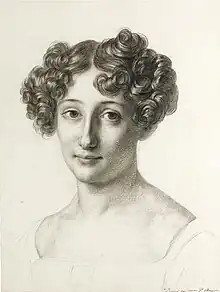 In the early late 18th century women were generally prevented from attaining an education in art academies in France, particularly if they did not have money and connections.[7] Auzou attended Jean-Baptiste Regnault's atelier[2] in 1802 along with Sophie Guillemard, Eugénie Delaporte, Caroline Derigny and Henriette Lorimier.[8] She was influenced by another woman artist, Marguerite Gérard,[9] and by Jean-Auguste-Dominique Ingres.[10]