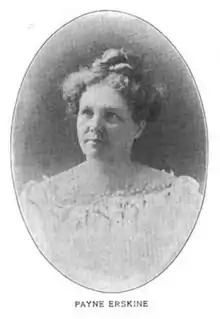 In 1854, Erskine was born in Racine, Wisconsin, to Alfred Payne and Olive Child.[1] Alfred was an artist, which may have led to her portrayal of her main character's father in The Eye of Dread as an artist.[2] She seems to have let her personal life affect the characters and events in her stories quite often, actually. It is possible and likely that her childhood at the brunt of the United States Civil War affected her creation of certain stories which take place at that same time.[2] Being of both English and prominently American ancestry, her stories, such as The Mountain Girl, seem to attempt to draw the two cultures together.[3]