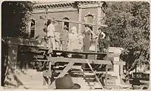 The development for the sculpture was started by the historian French Quinn.[2] He headed up the placing of flowers on veterans graves during Decoration Day.[5] Quinn wrote an editorial in the Decatur Daily Democrat called "Let's Build a Soldiers Monument" and demanded that funds be raised to build a war memorial. The result was a property tax program, supported by the Grand Army of the Republic, that helped raise the funds. The tax was 7 cents for every $100 paid.[1][5] The piece was created between 1912 and 1913 and installation began in July 1913.[5] Development of the piece was led by Sam Henry Post from the Grand Army of the Republic and John H. Heller. The county contributed $10,000 for the piece to be created.[2] Delays in the finalization of the work pushed the dedication back by two weeks.[5] It was dedicated on October 30, 1913.[2] State Governor Samuel M. Ralston attended the ceremony.[5]