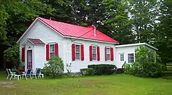 The building, now a private home, was added to the National Register of Historic Places in 1983. It is a single-story three-by-three-bay frame structure on a stone foundation, now parged with concrete. A gabled roof is pierced by a brick chimney. To the west a modern shed-roofed wing on block piers projects.[1]