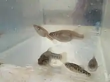 The Pecos gambusia (Gambusia nobilis) is a species of fish in the family Poeciliidae endemic to the Pecos River in Texas and New Mexico in the United States. This two-inch species, as most of its family, is a livebearer. Females produce broods of up to 40 fry every four to five days. The fish are omnivorous, eating algae and small invertebrates, and are endangered due to loss of their spring-fed desert habitat.[3]