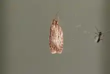 The wingspan is 18โ€“23 mm. The forewings are fuscous, sometimes reddish tinged, sprinkled with dark fuscous. The anterior half is more or less mixed with ochreous whitish. The stigmata are indistinct and dark fuscous, the plical beneath the first discal and there is a thick cloudy dentate angulated ochreous-whitish subterminal line, near and parallel to the posterior half of the costa and termen. There is a terminal series of dark spots. The hindwings are light grey, paler towards the base.[2]