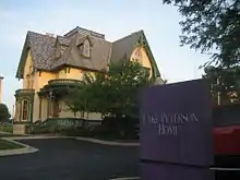 In 1918 Peterson purchased the Lake-Peterson House, as it is now known, as a private residence. This was at the time that P.A. was chairman of the new Swedish-American Hospital on Charles Street, and the house was directly north at 1313 E. State St. Peterson donated the Lake-Peterson House to Swedish-American Hospital in 1919, provided he and his wife be allowed to remain in it until they died.[4] The somewhat oddly Gothic-tinged Victorian structure, on Rockford's main east–west street (State St. is U.S. 20, running from Chicago out to Dubuque, Iowa), is today used for hospital executive offices and is on the National Register of Historic Places.