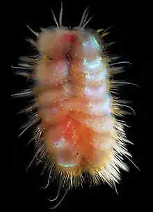 The four species discovered in 2020 were described as 'glitter worms'[3] due to their shiny and colorful bristles and plates. One of the species, P. elvisi, was named after Elvis Presley, as the shimmering plates reminded the researchers of the sequins on his jumpsuit.[4]