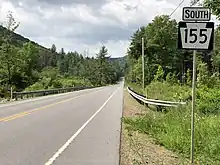 Pennsylvania Route 155 (PA 155) is a 32.2-mile-long (51.8 km) state highway located in Cameron, Potter, and McKean counties in Pennsylvania. The southern terminus is at PA 120 in Emporium. The northern terminus is at PA 446 in Eldred Township.