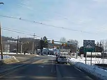 PA 69 southbound approaching its terminus at US 62 in North Warren