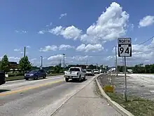 The section of present-day PA 94 south of Hanover was built in 1736 and 1737 as a wagon road connecting the Conewago Settlement (present-day Hanover) with Baltimore. This road became the Hanover branch of the Baltimore and Reisterstown Turnpike in 1805, a private turnpike that ran between Baltimore and Hanover via Reisterstown, Maryland.[6] This branch later became known as the Baltimore and Hanover Turnpike, with toll collection stopped by 1899.[6] The section of current PA 94 north of Hanover was chartered as the Hanover and Carlisle Turnpike in 1812, connecting Hanover with Carlisle.[7] These two turnpikes provided an improved trade link between the Cumberland Valley and Baltimore.[8] When routes were legislated in Pennsylvania in 1911, what is now PA 94 was designated as part of Legislative Route 190 between the Maryland border and Hanover.[9] PA 94 was designated in 1928 to run from MD 30 at the Maryland border southeast of Hanover north-northwest to PA 34 in Mount Holly Springs, following its current alignment. Upon designation, the entire length of the route was paved.[10][11] The portion of PA 94 in central Hanover was widened in the 1940s.[12] In the 1950s, the widened sections of the route were extended further north and south in the Hanover area.[13] In 1998, an act of the Pennsylvania General Assembly designated the entire length of PA 94 as the 94th Infantry Division Memorial Highway in honor of the 94th Infantry Division.[14] In 2020, a roundabout was constructed at the intersection with PA 394 in Hampton.[15]
