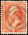 - ↑ "Completion of First Transcontinental Railroad" 3₵ United States postage stamp depicts Stanford driving the "golden spike" at Promontory Point, Utah. Stanford is not identified by name in the stamp, but is depicted holding a sledgehammer in front of a train as photographer A.J. Russell to the right prepares to capture the image for posterity.