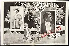 One of the earliest magicians in New Zealand would have been Jane Whiteside, a tightrope dancer, gymnast and magician, who performed under a number of aliases in the 1870s. Whiteside took up magic after seeing American magician Cora de Lamond, billed as 'the only female magician in the world' perform in 1873.[97][98] Touring magic shows occurred.[99]