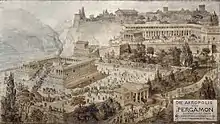 Reconstructed view of the Pergamon Acropolis, Friedrich Thierch, 1882