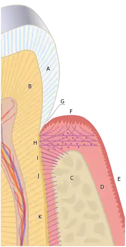- ↑ "Anatomy of the Periodontium". DentalCare.com. Retrieved 21 October 2019.