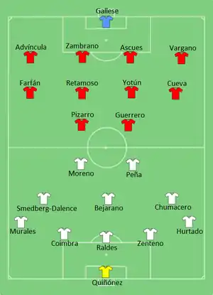 - ↑ "Perú y Ecuador igualan 2–2 por el Grupo B de la Copa América" [Peru and Ecuador draw 2–2 in Group B of Copa America] (in Spanish). CONMEBOL. 8 June 2016. Retrieved 8 June 2016.