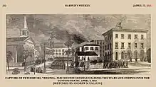 Sketch showing arrival of Union troops in Petersburg in April 1865, providing an incidental glimpse of the Custom House and Post Office. Harpers Weekly