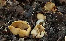 Peziza succosa is a species of apothecial fungus belonging to the family Pezizaceae. It grows in woods in Europe, Iceland, Israel, China, Argentina, and the United States.[1] In Europe this fungus appears in summer and autumn as grey or brown saucers up to 10 cm (3.9 in) in diameter on soil in woodland, often at pathsides. In the United States, this type of cup fungi may also be found on decaying deciduous wood. It is inedible.[2]