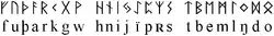 The Elder Futhark. R represents a late Proto-Norse pronunciation, whereas earlier dialects of Proto-Germanic had z.