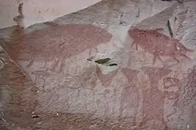 Rock art includes both humanoid and animal figures like the Giant Mekong Catfish