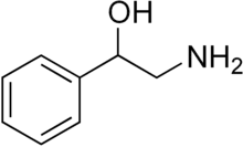 Phenylethanolamine (sometimes abbreviated PEOH), or β-hydroxyphenethylamine, is a trace amine with a structure similar to those of other trace phenethylamines as well as the catecholamine neurotransmitters dopamine, norepinephrine, and epinephrine. As an organic compound, phenylethanolamine is a β-hydroxylated phenethylamine that is also structurally related to a number of synthetic drugs in the substituted phenethylamine class. In common with these compounds, phenylethanolamine has strong cardiovascular activity[1] and, under the name Apophedrin, has been used as a drug to produce topical vasoconstriction.[2]