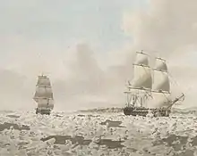 Racehorse and Carcass forcing through the ice, 1774 watercolour by John Cleveley the Younger based on sketches by d'Auvergne
