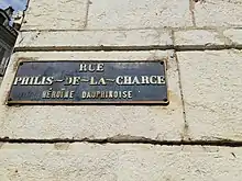 Plaque that marks Philis de La Charce road in Grenoble, France.