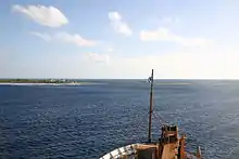 Two islands that were reported and charted in 1825 with coordinates similar to those of Canton Island were referred to in those documents as "Mary Island" and "Mary Balcoutts Island".[1] In addition, Reynold's report describes a "Barney's Island" roughly at Canton's position, which may have been named and discovered by Capt. Joseph Barney of Equator, who was whaling in the area in 1823–4.[29] The island was given the name "Canton" in 1872 by Commander Richard W. Meade of USS Narragansett, who named it after the whaling ship Canton, which had been wrecked there in 1854.[30]