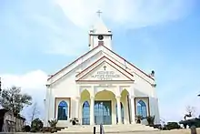 "Phungyo", a term derived from "Beautiful Hill" was given by Reverend William Pettigrew, when Hunphun (Ukhrul headquarter) elders told Pettigrew that a beautiful mount or hill is known as Phungyo in Tangkhul-Naga dialect.[2] The Church, Phungyo Baptist Church, is constructed on this hill; hence, the name. The first Christian Church in Manipur, the church trace its origin to 29 September 1901, when 12 Tangkhul men were converted to Christianity by Pettigrew. The birth of Christianity among the Tangkhuls is therefore associated with this conversion. Baptized at Ngayira Rakhong (Ngayira Spring Pond), the first converts include, Hollei Rumthao, Sangmayang Kashung, Ramkaiphang Samrar, Leishisan Shaiza, Maninglum Kashung, Mangaleng Shaiza, Sakhayang Awungashi Shimray, Shangam Kasar, Kaphungkui Chiphang, Haora Mahongnao, Mashokring Kasomhung, and Thiksha Shokchui Kapai.[2] Women later followed the step, and ten of them converted to Christianity in 1910. Baptized by Pettigrew, they include, Sanamla Ragui, Mahongai Rumthao, Horngaila/ Harngaila Singnaisui, Lanotla Samrar, Charoni Ngakang, Ngalew Ngakang, Kasuni Ngakang, Shareila Muirung, Lasengla Kasomwoshi, and Mikngaola Shingnaisui. The first Phungyo Church that the converts attended were made of mud walls, and having left in ruins by Allied air raid in search of Japanese forces during the second World War, the present (standing) church was reconstructed, and inaugurated by Kanrei Shaiza on 7 February 1977.[2]