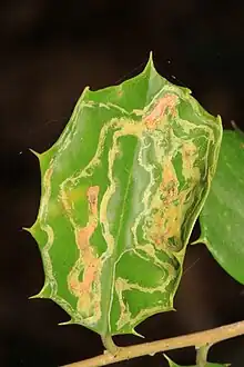 - ↑ Scheffer, Sonja J; Lewis, Matthew L; Hébert, Julie B; Jacobsen, Frode (15 January 2021). "Diversity and Host Plant-Use in North American Phytomyza Holly Leafminers (Diptera: Agromyzidae): Colonization, Divergence, and Specificity in a Host-Associated Radiation". Annals of the Entomological Society of America. 114 (1): 59–69. doi:10.1093/aesa/saaa034. Retrieved 22 January 2023.