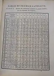 Tables in an 1817 copy of Delambre's "Tables écliptiques des satellites de Jupiter" – these calculations were influenced by Laplace's previous discoveries.