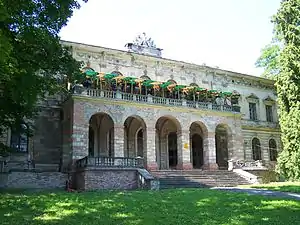 The castle is surrounded by a 10 ha park with diverse fauna and flora. There is a Classicist well in the park.[2]