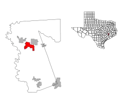 The western boundary of the town is formed by Clear Creek, which flows from north to south. U.S. Route 290 Business on either side of FM 359 is part of the northern town limit. Cochran Road from north of Brumlow Road south to Betka Road forms the eastern boundary. The southern boundary is formed by Betka Road and an irregular line running west to Clear Creek.[7]