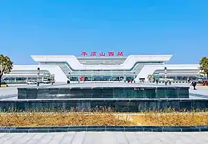 Pingdingshan West railway station is a railway station on the border of Baofeng County and Xinhua District, Pingdingshan, Henan, China. It opened with the first stage of the Zhengzhou–Wanzhou high-speed railway on 1 December 2019.[1]
