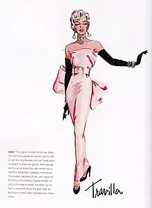 When the costume designer William Travilla, known simply as Travilla, began working with Marilyn Monroe, he had already won an Oscar for his work in Adventures of Don Juan in 1948. Travilla designed the clothes of the actress in eight films, and later claimed to have had a brief affair with Monroe.[3] In 1953 Travilla designed the costumes for Gentlemen Prefer Blondes.