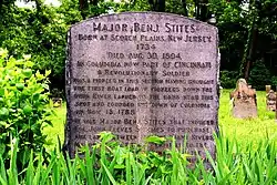 Included in this cemetery is the grave of Major Benjamin Stites, 1734–1804, founding father of Columbia. The fellow founder of Columbia and pioneer, soldier, and legislator Ephraim Kibbey (1756–1809) is memorialized here on the monument "To the First Boat-load" erected in 1879.[6]