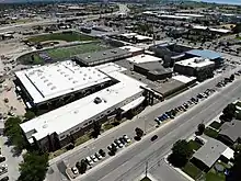 An aerial view of Lehi High School in 2019