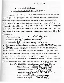 Certificate of Pilecki's execution signed by Śmietański (bottom, illegible), 25 May 1948 at the Mokotów Prison