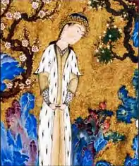 The Pishdadian kings are figures in Persian mythology, about whom a number of legends are recorded in Zoroastrian texts, including the Avesta, and in the Shahnameh,[1] a medieval Persian poem recognised as Iran's national epic.[2] From the 9th century, the Pishdadians also appear in Arabic prose works of Muslim writers.[3] The overwhelming evidence is that the existence of the Pishdadian dynasty has no historical basis.[4] The various tellings of their story nevertheless portray them as the first Iranian dynasty ruling a mythical kingdom that existed at a time before the Achaemenids, the first historical Persian dynasty.[1] The etymology of Pishdadian (from Persian: پيشداد, pišdād) is usually thought to mean “those who first promulgated laws”. However, an alternative view is that it comes from paradhata, a word from the Avesta, meaning “created before [others]” or “first created”.[5]