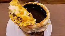 Shaki piti is specific because boiled chestnuts are used instead of potato.[2] It is cooked in an earthenware pot called "dopu", which should not be a new one.[9] Firstly, chickpeas are placed in the ceramic pots, then small pieces of mutton are added. The top layer is salted tail fat. After all of this, water is poured to the pot. Piti is cooked in 8–9 hours.[6][8]