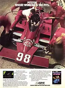 Pitstop is a 1983 racing video game developed and published by Epyx for the Atari 8-bit family,[1] ColecoVision, Coleco Adam, and Commodore 64. A sequel, Pitstop II, was released in 1984.