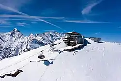 Piz Gloria is a revolving restaurant at the 2,970 m (9,740 ft)-high summit of the Schilthorn near Mürren in the Bernese Oberland, Switzerland.
