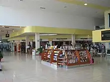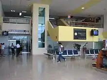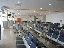 The passenger terminal, covering an area of 4,700 square metres (51,000 sq ft), houses both arrival and departure facilities for domestic and international flights. The terminal can handle 470 passengers per hour and offers typical services found at a regional airport, including check-in counters for domestic and international flights, car rental services (Alamo, Budget, Sixt, and Thrifty), taxi stands, and a departure concourse with four gates providing direct access to the apron, enabling passengers to board their planes by walking to the aircraft.
