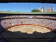 Plaza de Toros de Pamplona is a bullring in Pamplona, Spain. It is currently used for bull fighting, sporting or cultural events and music concerts.