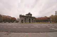 The Plaza de la Independencia (Independence Square) is a central square in the Spanish capital, Madrid. It sits at the intersection of Calle de Alcalá (running from east to west), Calle de Alfonso XII (to the south), Calle de Serrano (to the north), Calle de Salustiano Olozaga (to the northwest), and the Paseo de Mexico (to the southeast, running entirely within the Buen Retiro Park). Being centred with the 18th-century gate of Puerta de Alcalá, the Plaza de la Independencia is among the important symbols of the city of Madrid.