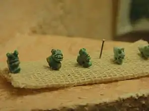 In the four corners of the court were found sculptures representing a serpents and at the center, as marker a serpent-lizard.[1]