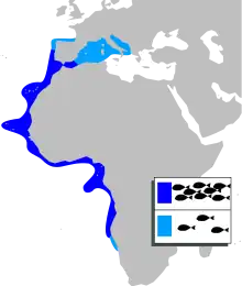 - 1 2 3 de Morais, L.; Sylla, M.; Camara, K.; Williams, A.B.; Sidibé, A.; Carpenter, K.E.; Montiero, V.; Lindeman, K.; Nunoo, F.; Quartey, R.; Djiman, R.; Sagna, A. (2015). "Plectorhinchus mediterraneus". IUCN Red List of Threatened Species. 2015: e.T194433A2334878. doi:10.2305/IUCN.UK.2015-4.RLTS.T194433A2334878.en. Retrieved 20 November 2021.