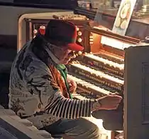 In addition to Lincoln and Twain many other famous writers and activists spoke at Plymouth, including William Lloyd Garrison, Wendell Phillips, Charles Sumner, John Greenleaf Whittier, Clara Barton, Charles Dickens, Ralph Waldo Emerson, Horace Greeley, and William Thackery.[10] More recently, in February 1963, Martin Luther King Jr. preached a sermon on "The American Dream,"[37] echoed just months later in his famous "I Have a Dream" speech at the Lincoln Memorial in Washington, DC.[38] Senator Hillary Clinton spoke at Plymouth in 2001,[39] and two noted minimalist composers, Philip Glass and Charlemagne Palestine, gave concerts using Plymouth's Aeolian-Skinner organ.[40][41][42][43]