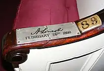 In October 1859, the church offered Abraham Lincoln $200 for coming to Brooklyn and giving a lecture to the congregation.[20][21] Lincoln accepted the invitation, traveled to Brooklyn and participated in church services on Sunday, February 26.[22] Today a plaque marks the pew where Lincoln attended the service. Because of high demand, Lincoln's address was moved to Cooper Union, where a 25-cent admission fee was charged. Lincoln gave his famous anti-slavery speech before a capacity crowd of 1,500 on February 27, 1860, more than eight months before he was elected President.[23][24][25]